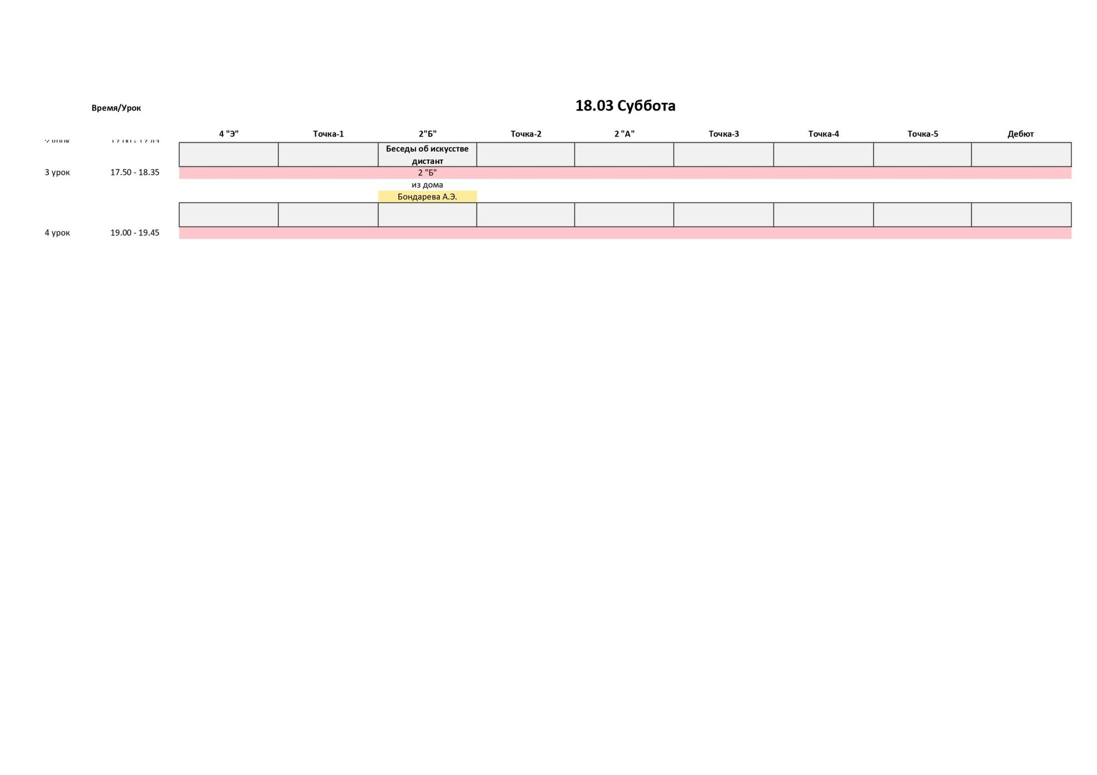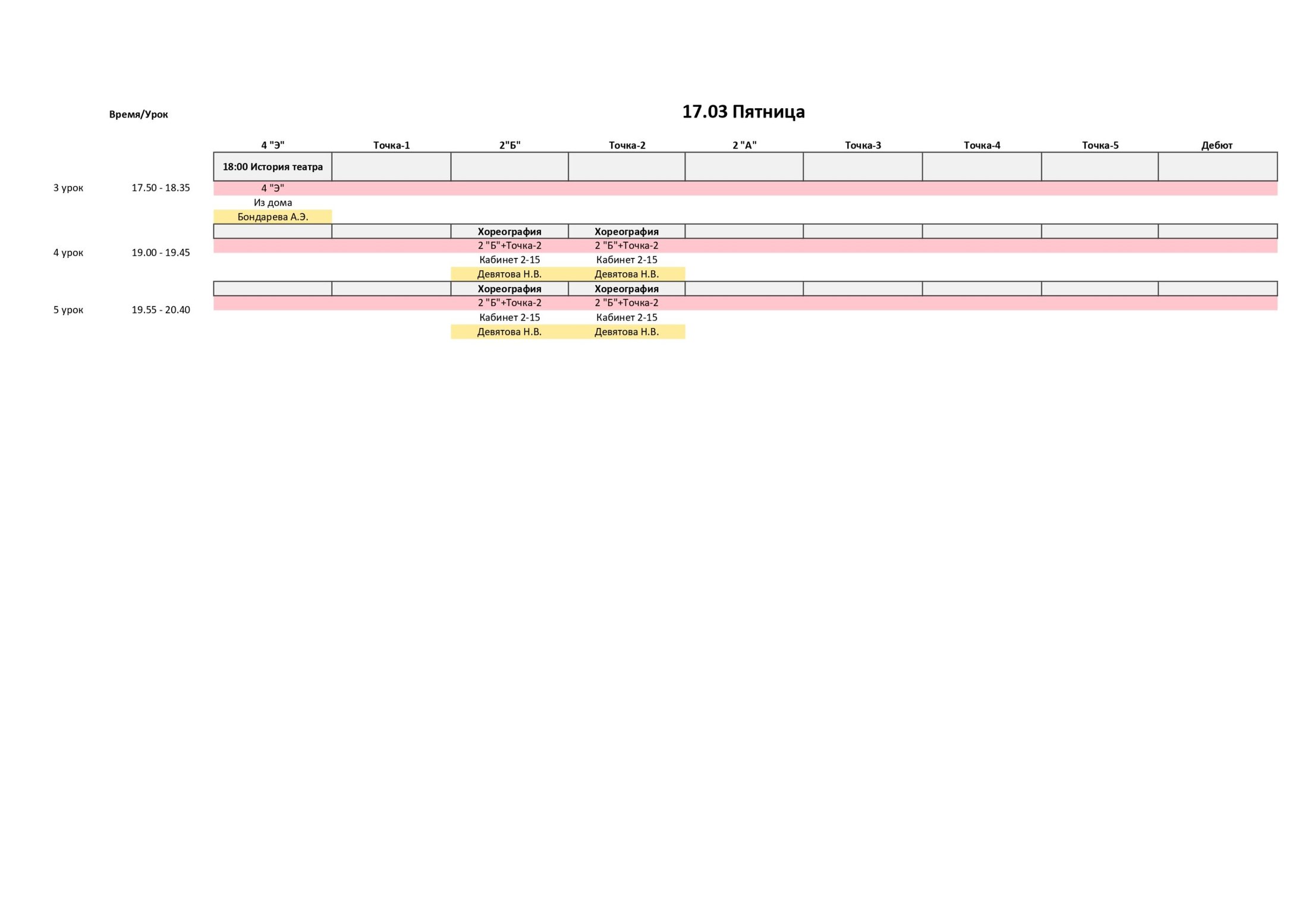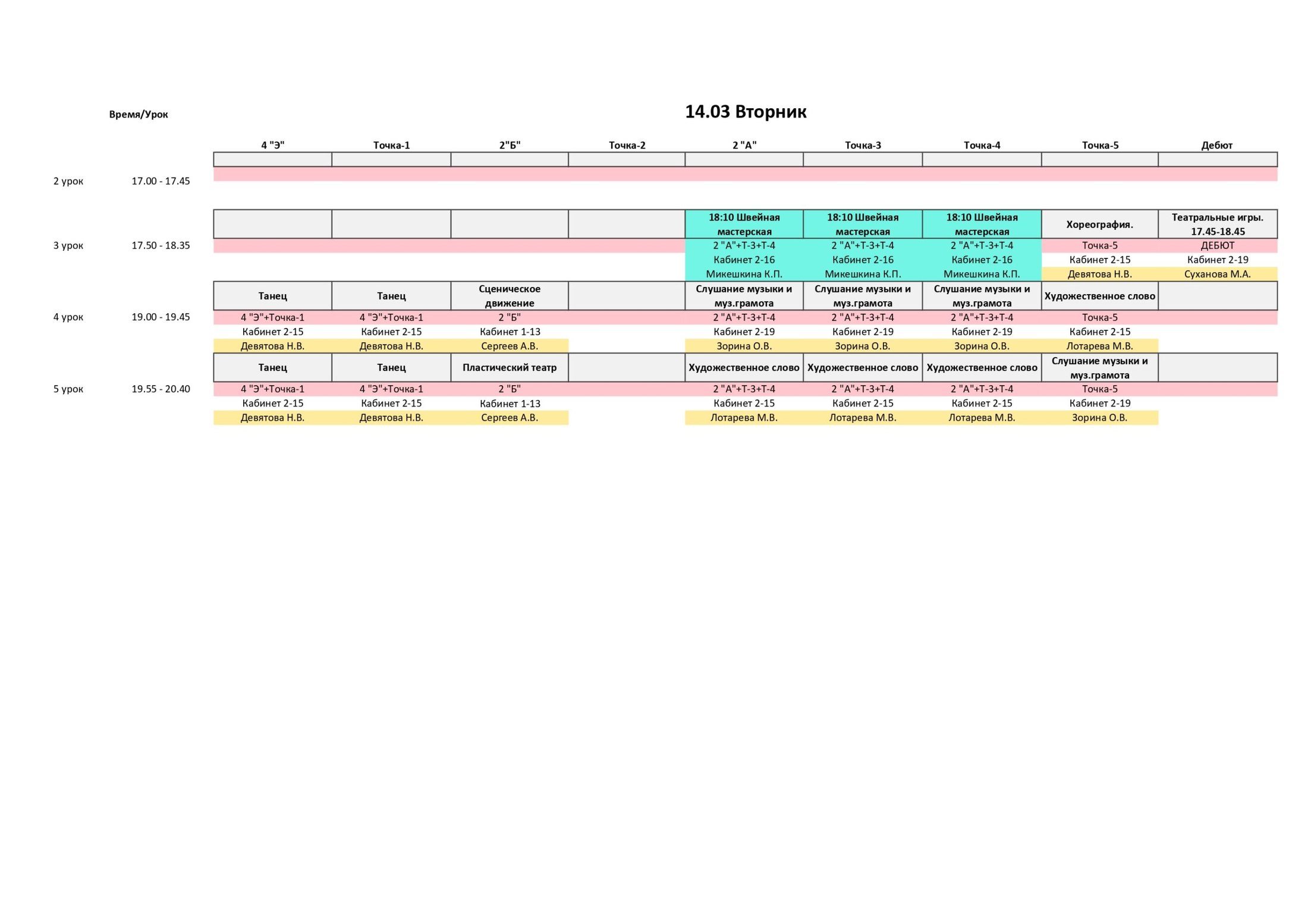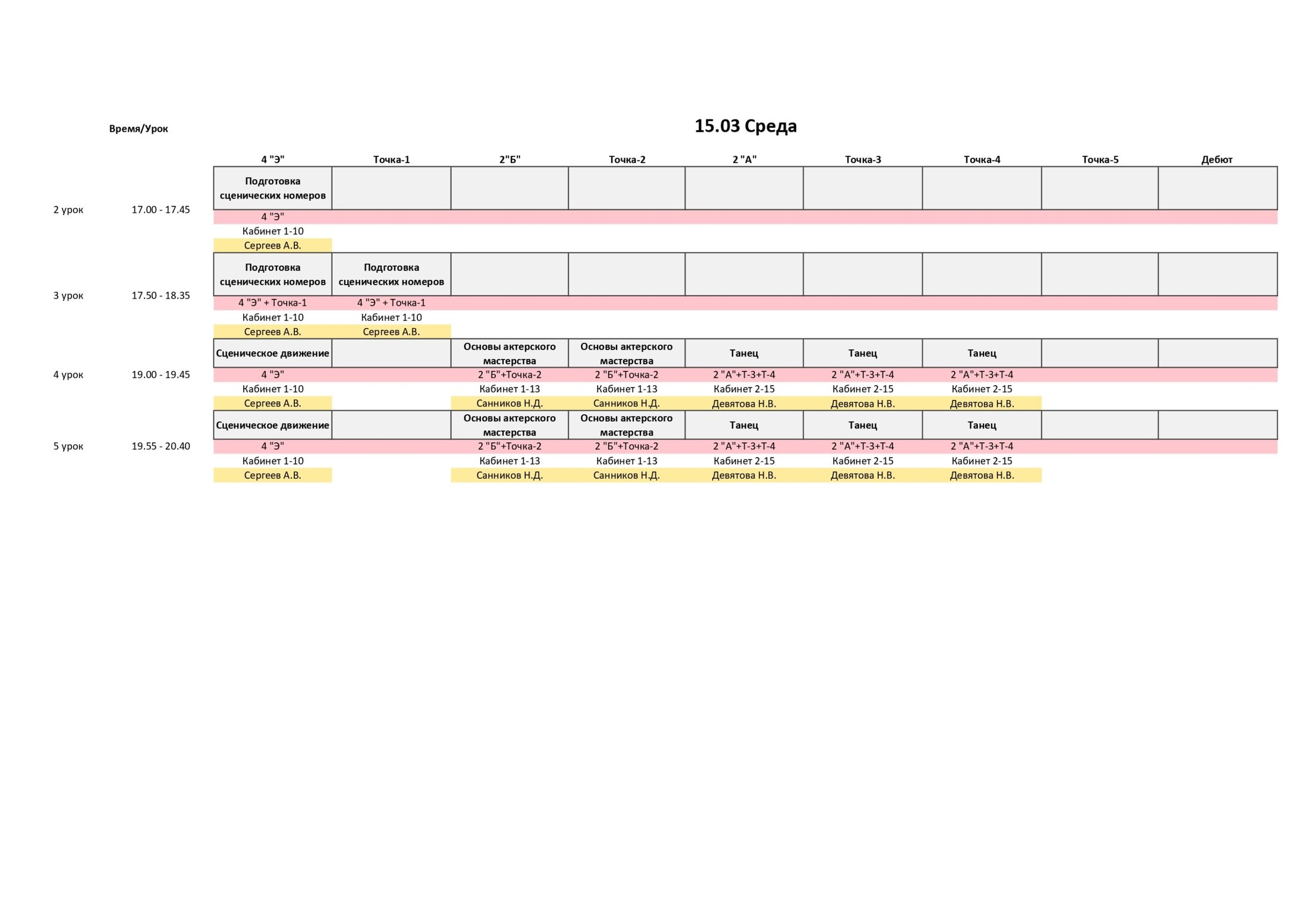 РАСПИСАНИЕ С 13 ПО 19 МАРТА