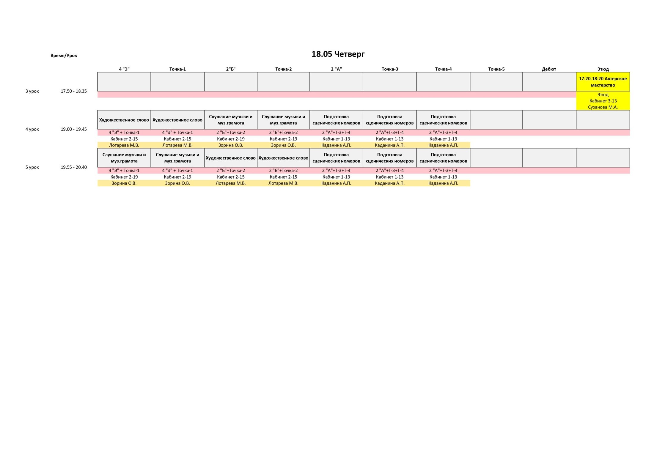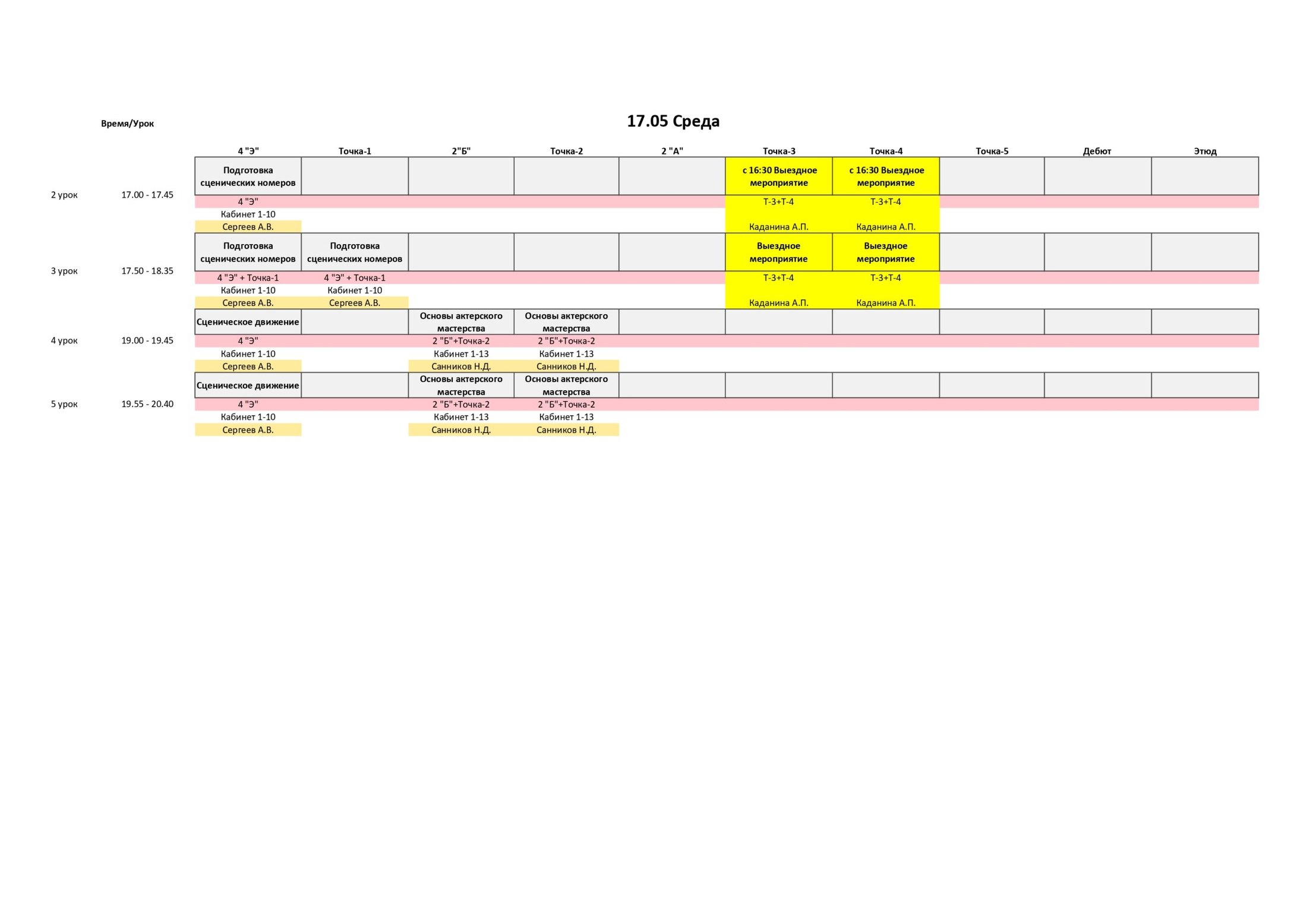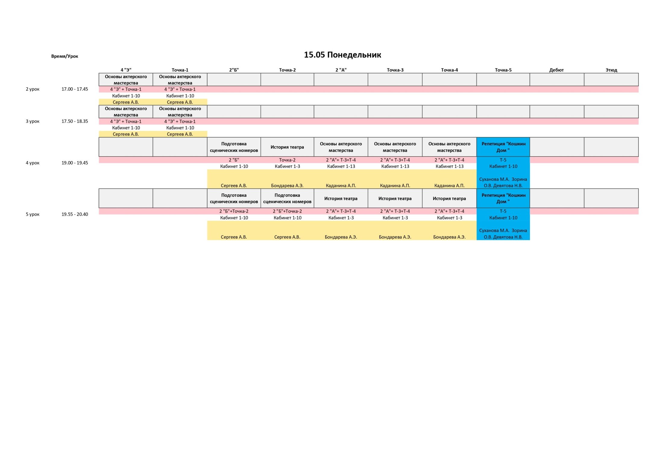 РАСПИСАНИЕ С 15 ПО 21 МАЯ