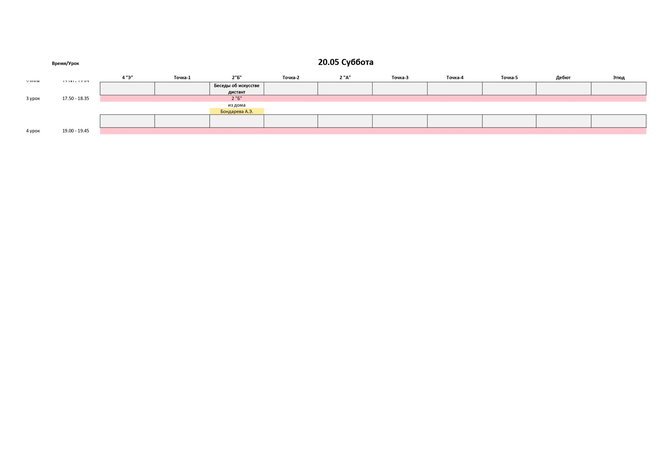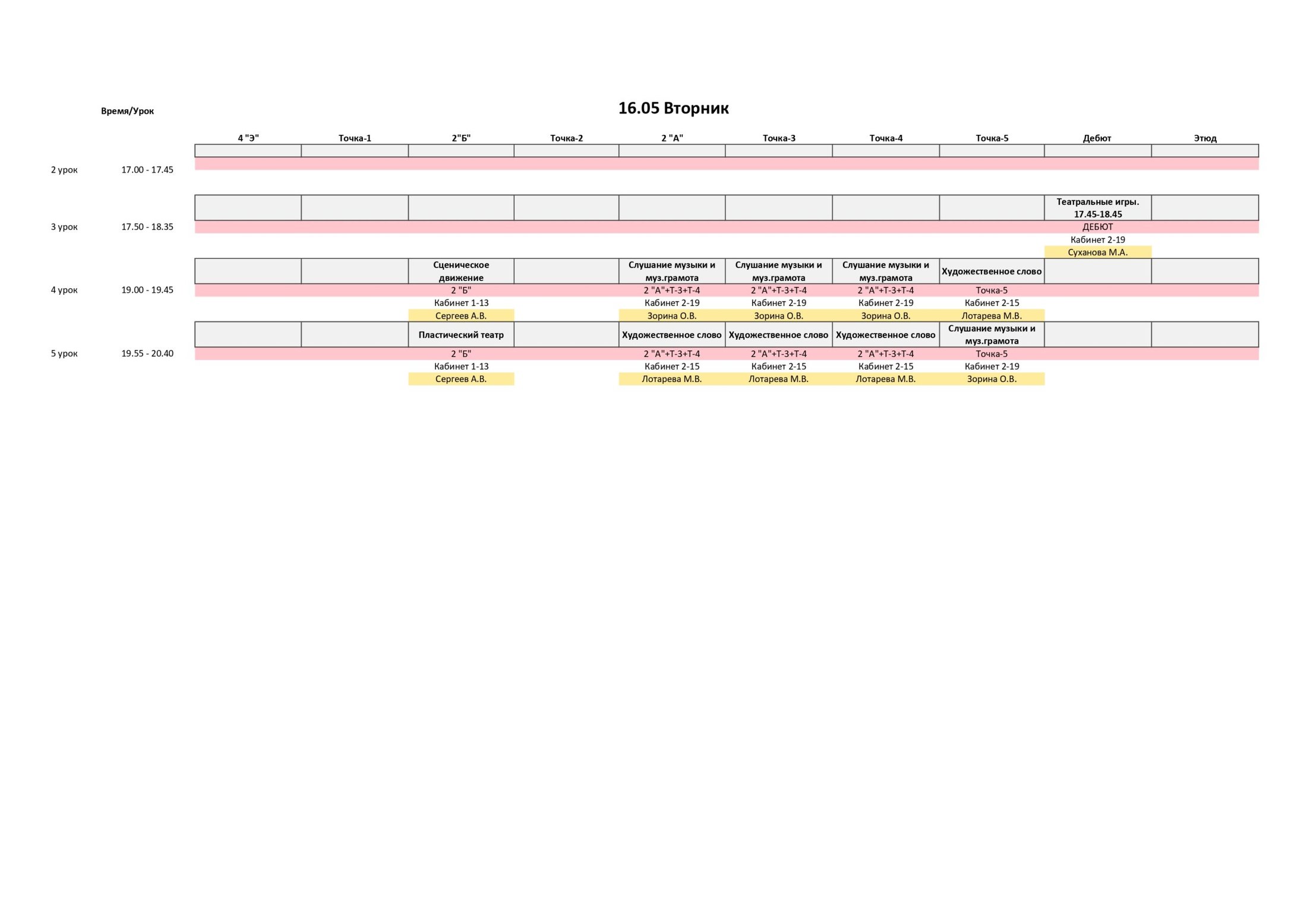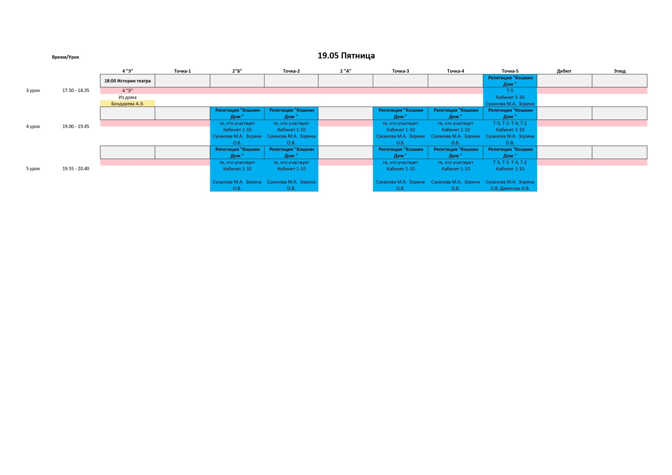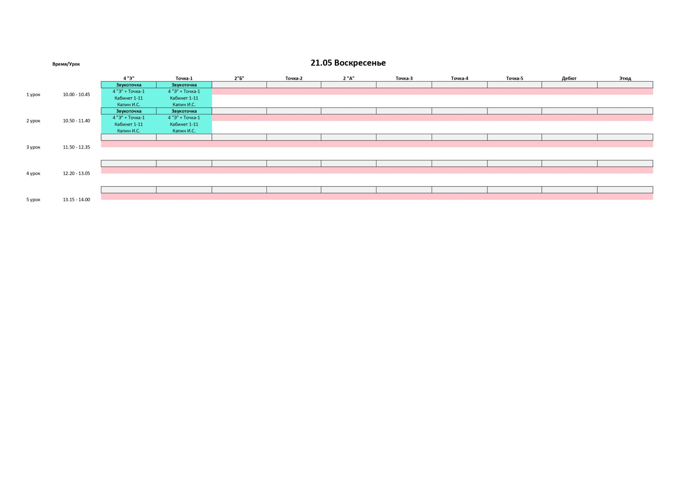 РАСПИСАНИЕ С 15 ПО 21 МАЯ