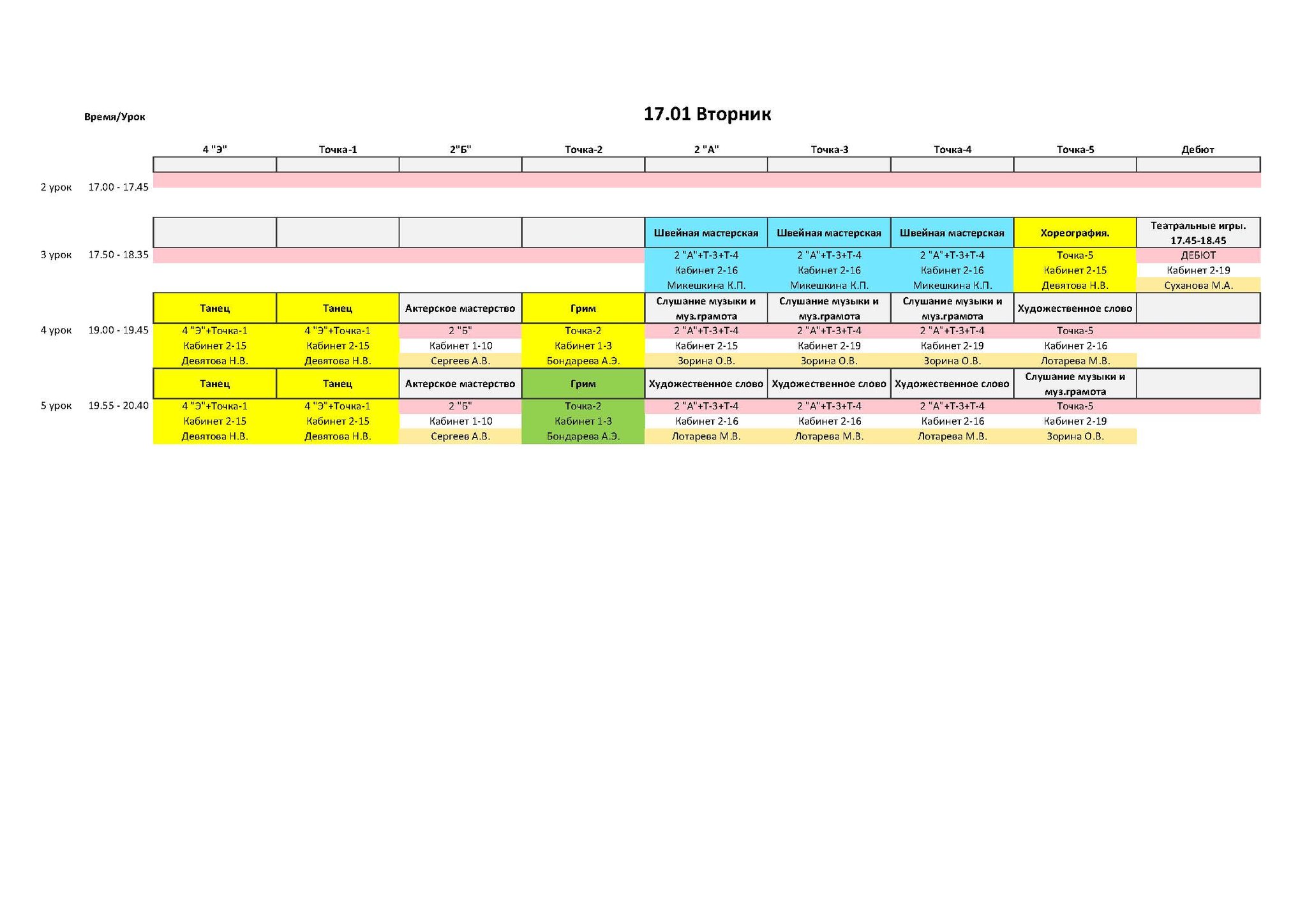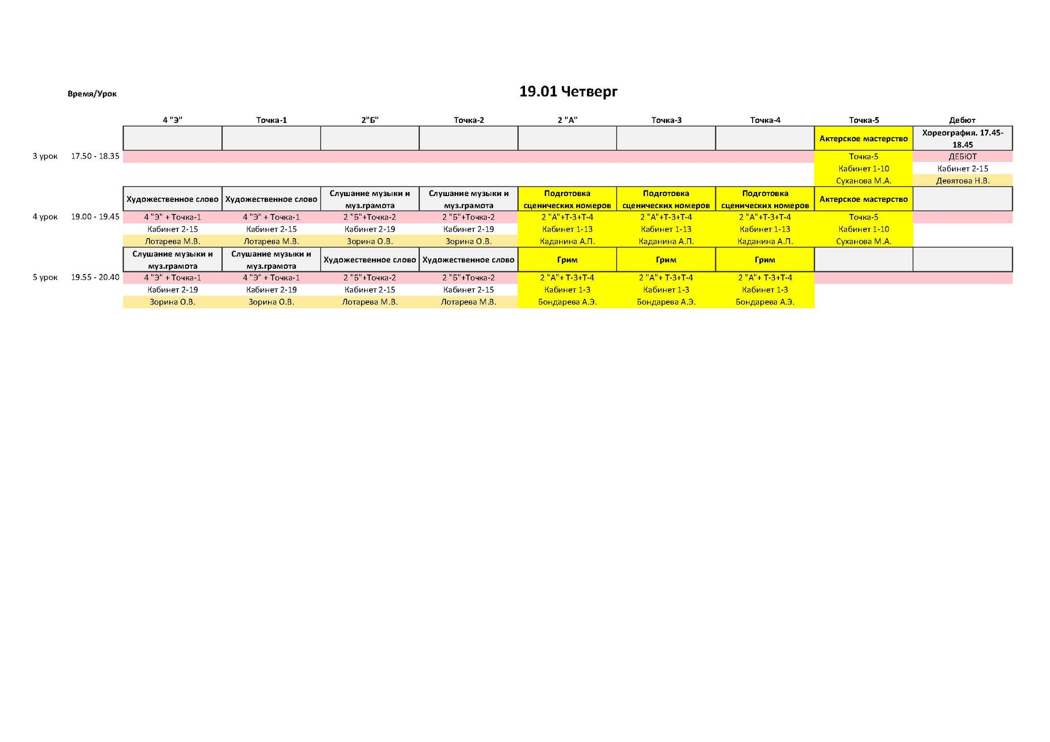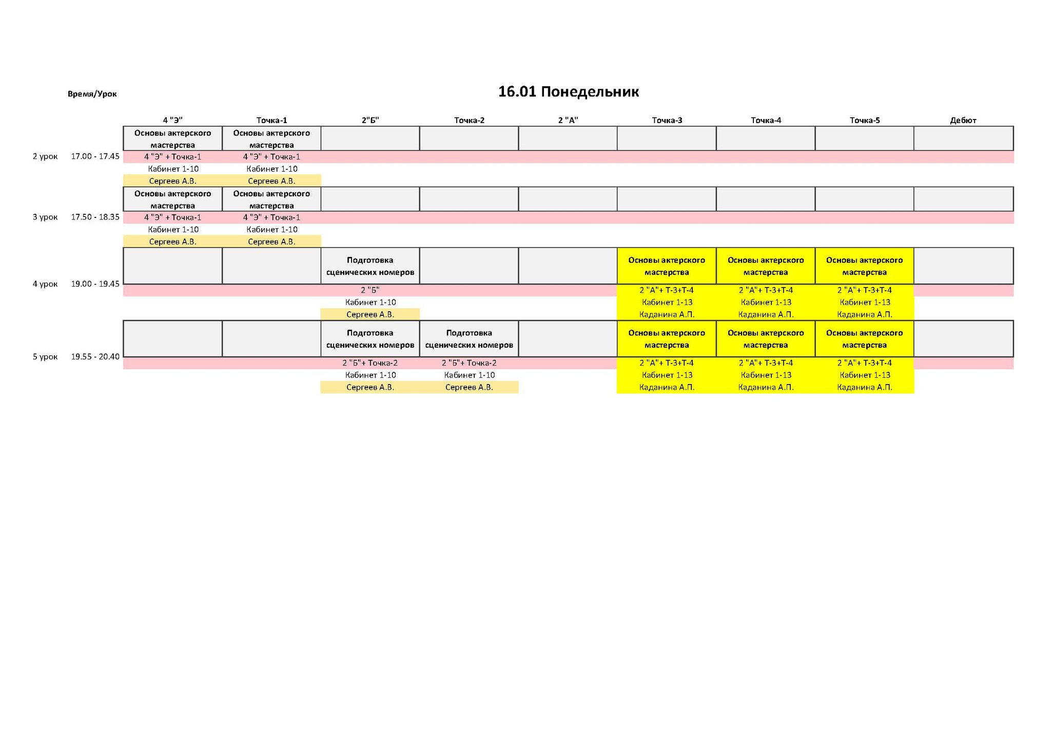 РАСПИСАНИЕ С 16 ПО 22 ЯНВАРЯ