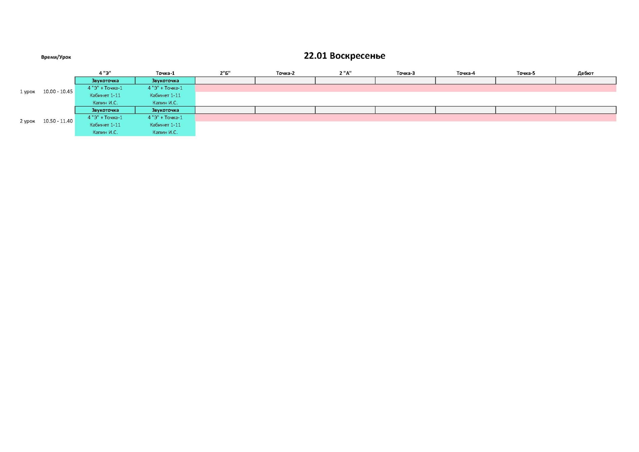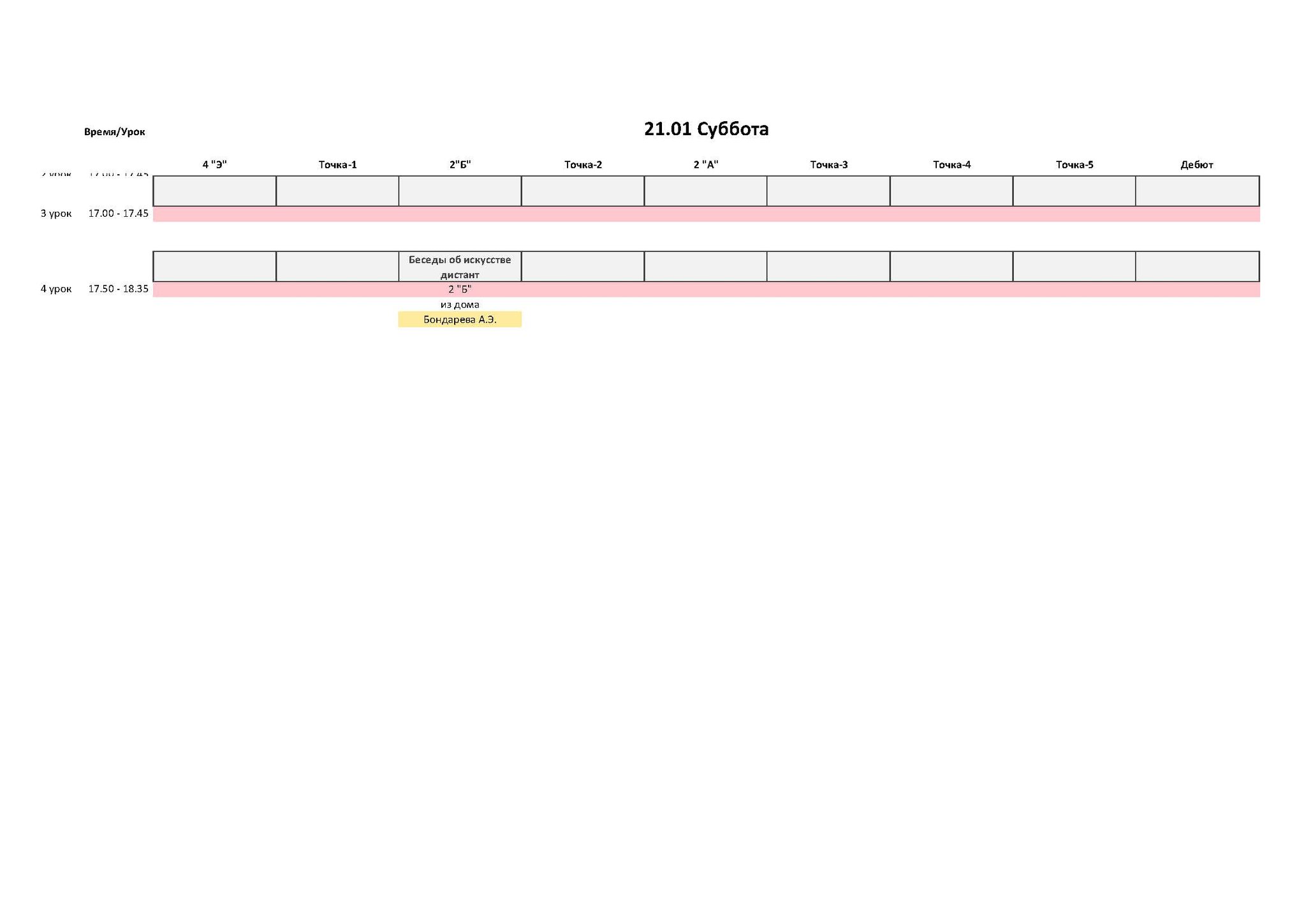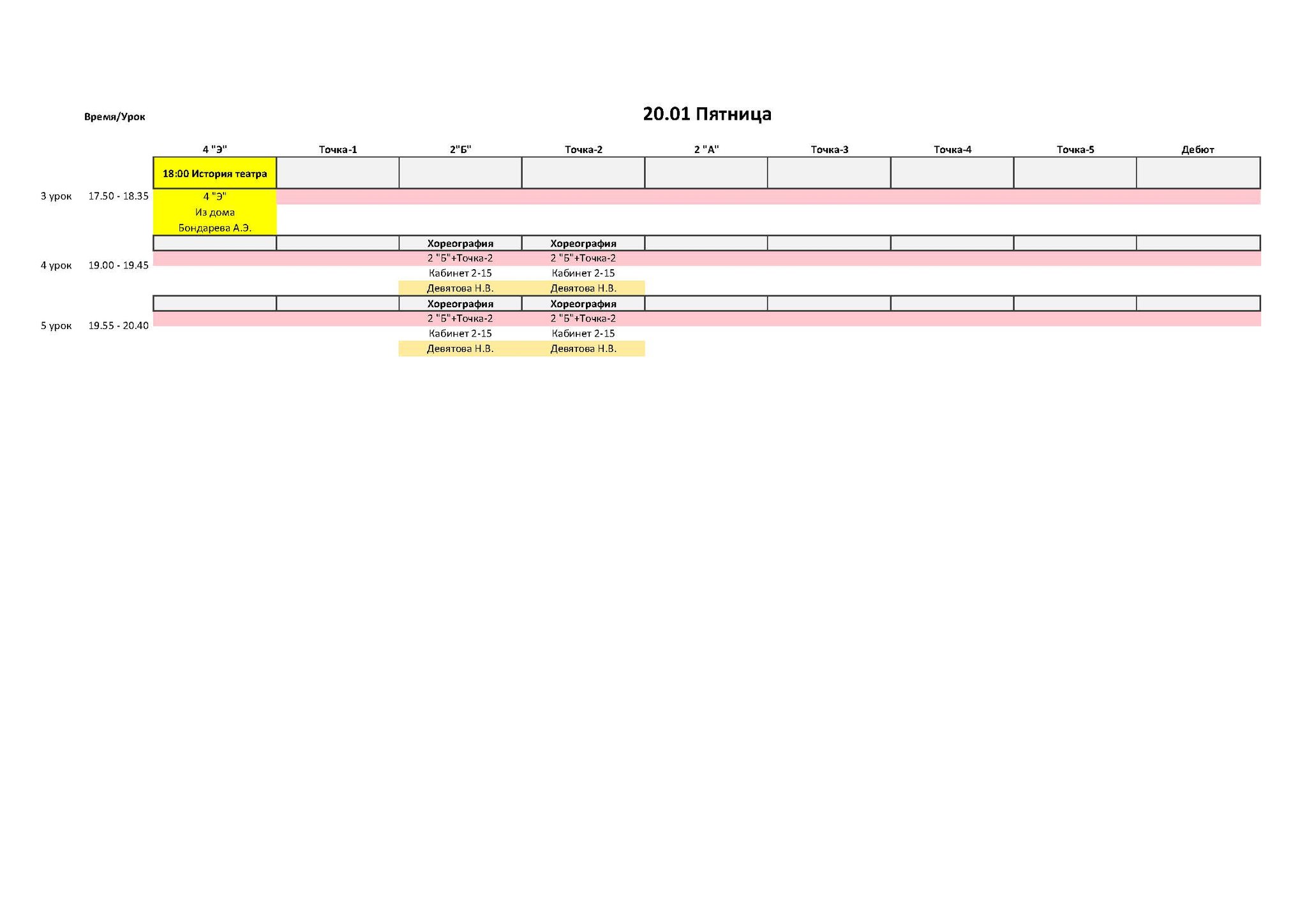РАСПИСАНИЕ С 16 ПО 22 ЯНВАРЯ