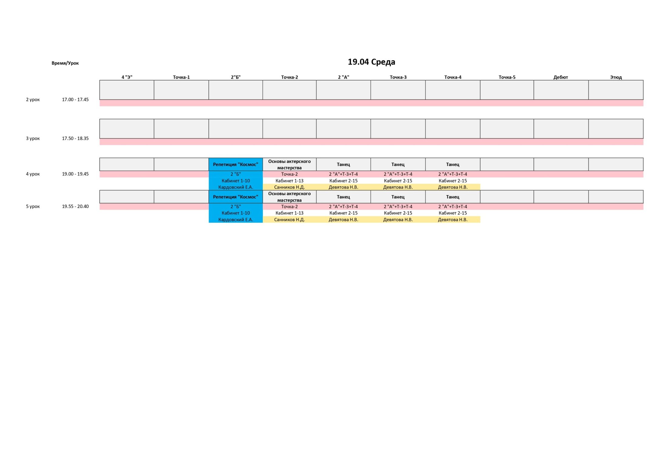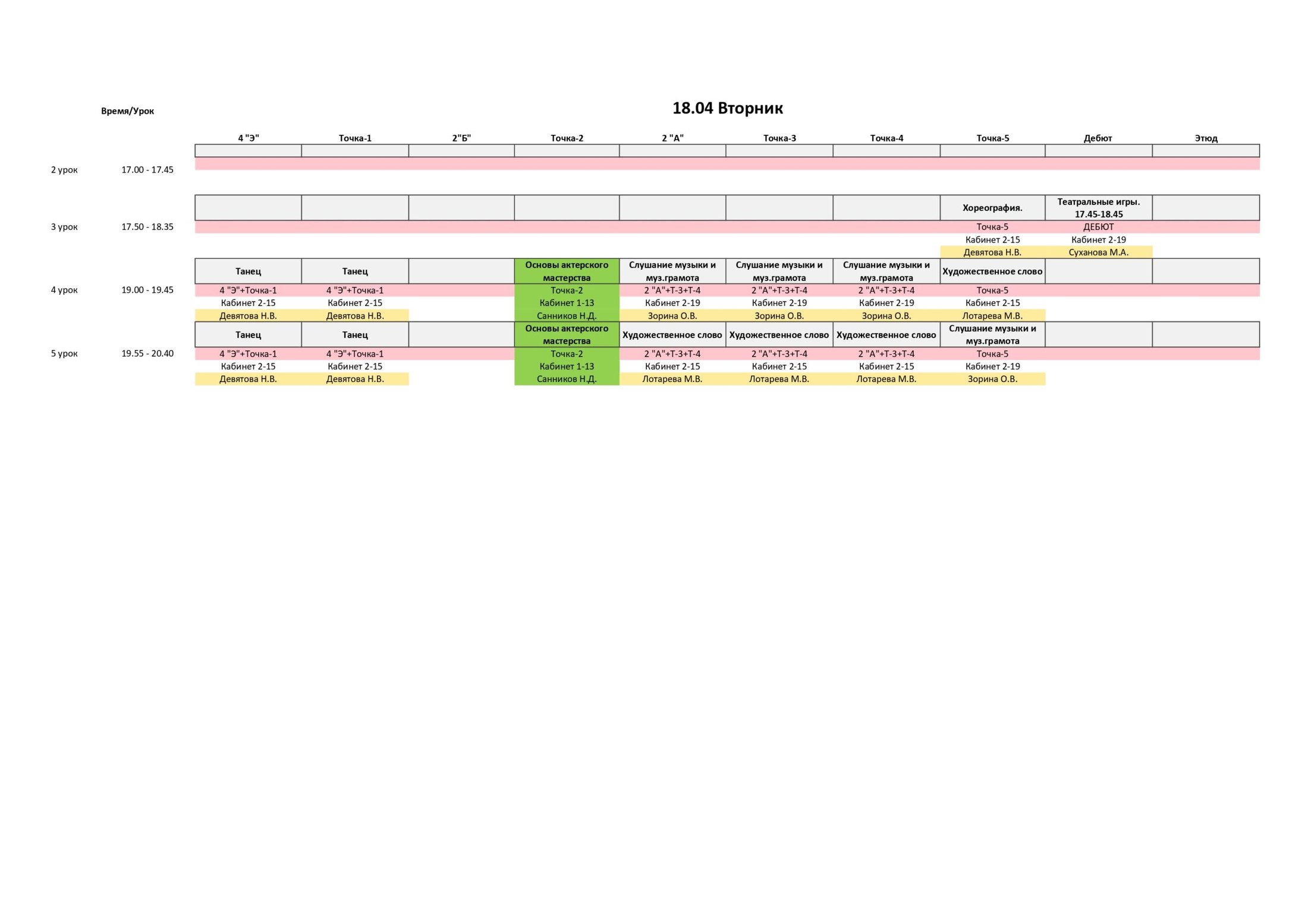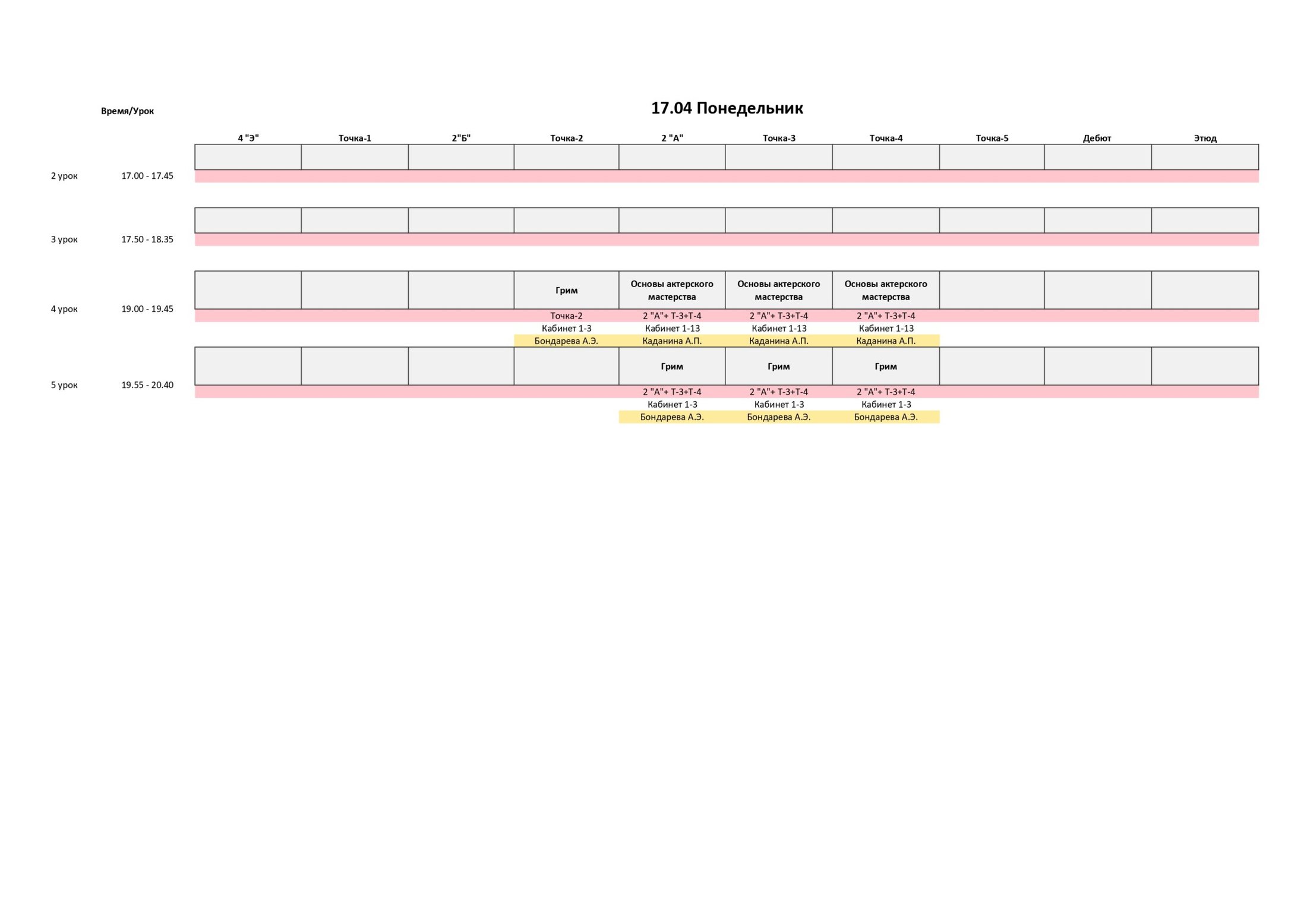РАСПИСАНИЕ С 17 ПО 23 АПРЕЛЯ