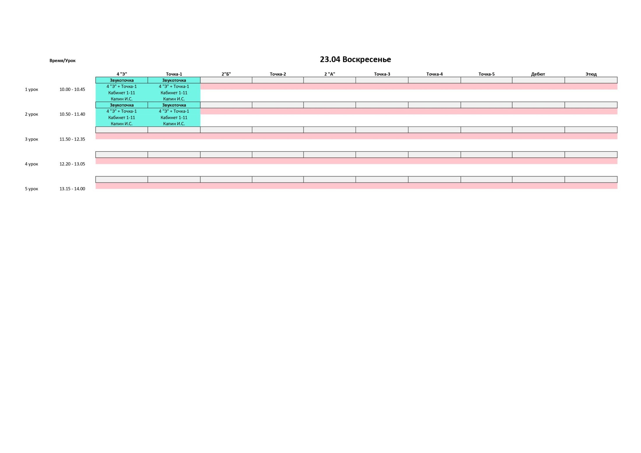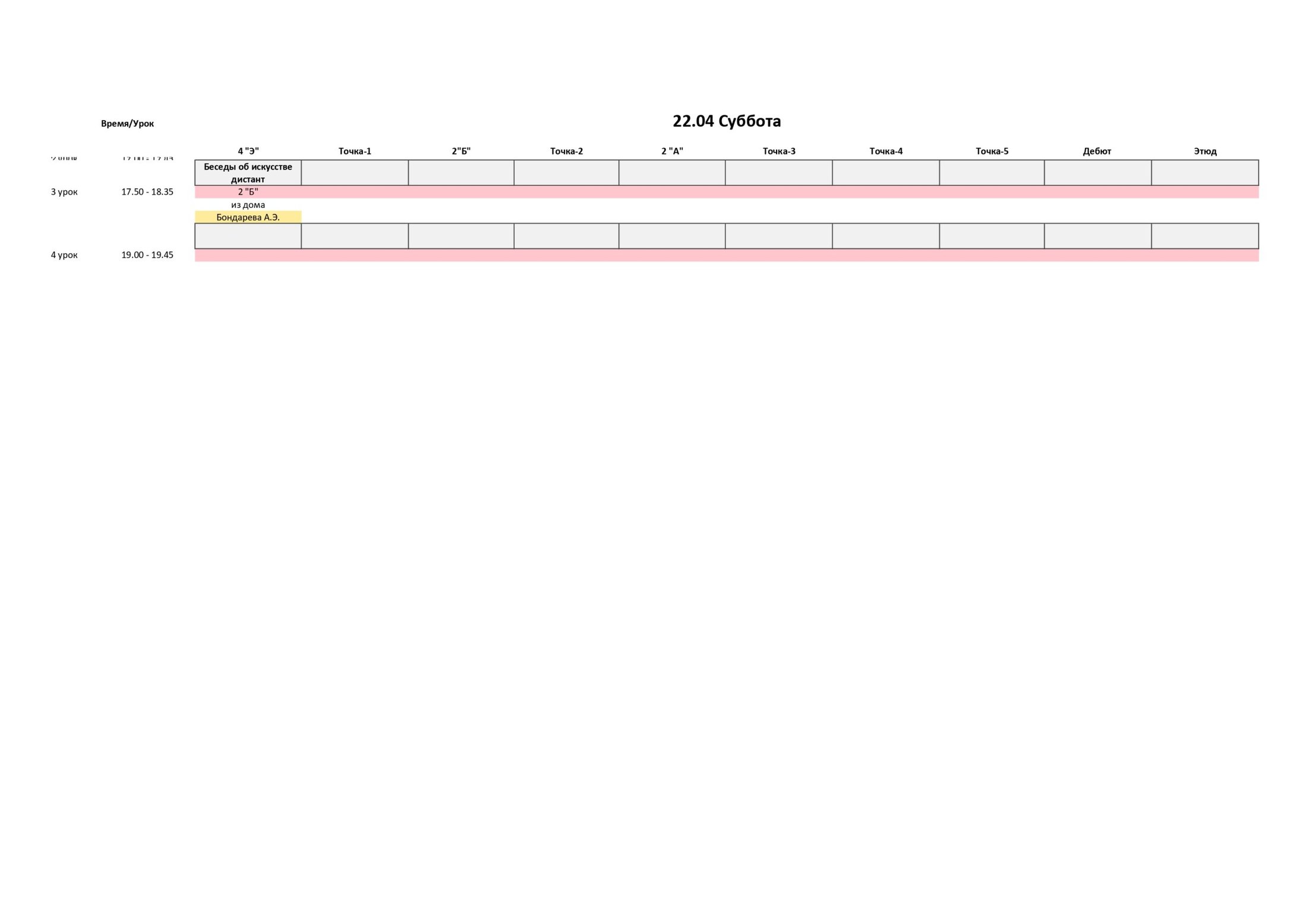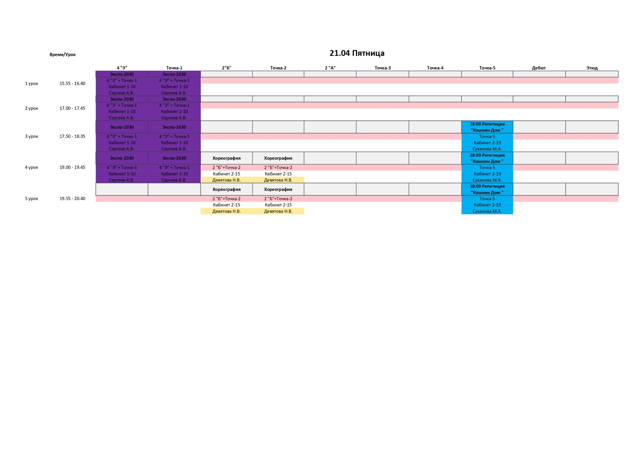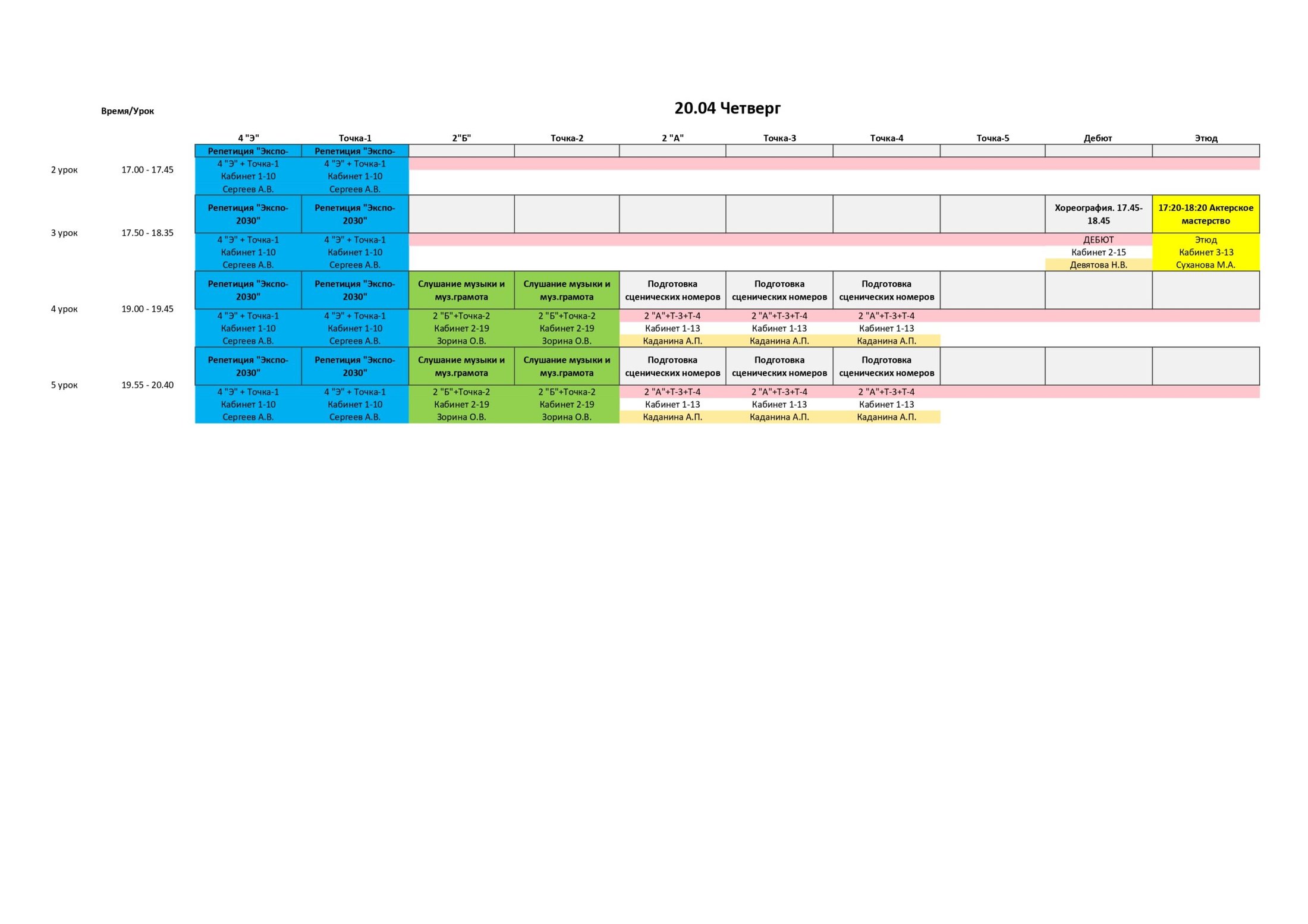 РАСПИСАНИЕ С 17 ПО 23 АПРЕЛЯ