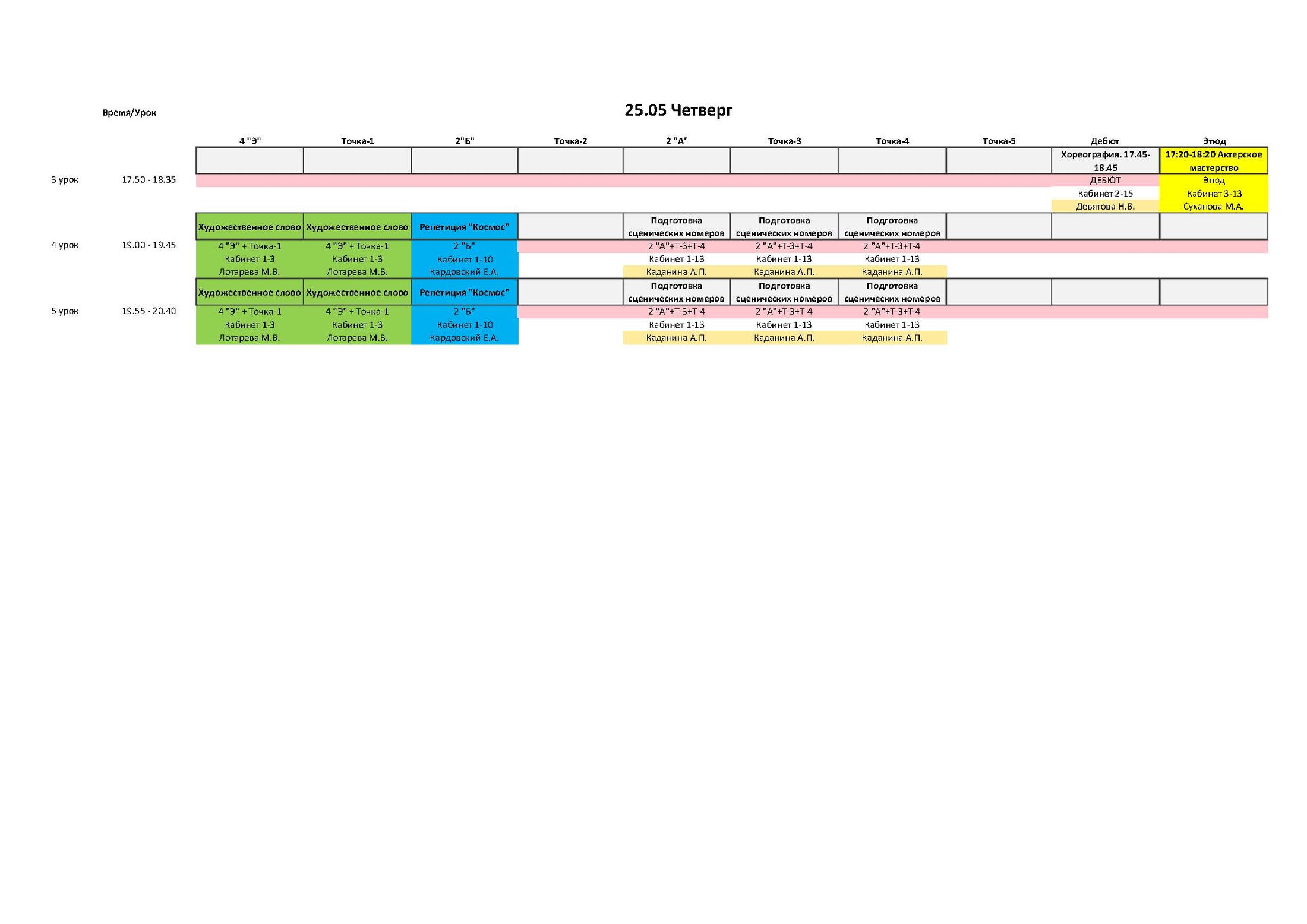 РАСПИСАНИЕ С 22 ПО 28 МАЯ