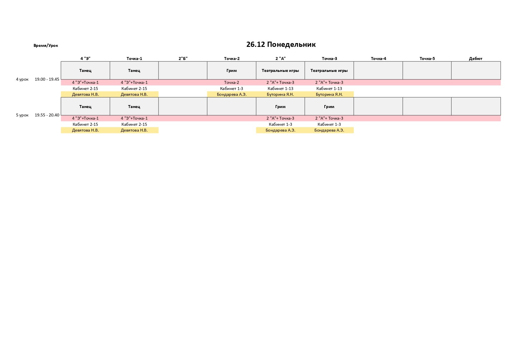 РАСПИСАНИЕ С 26 ПО 28 ДЕКАБРЯ