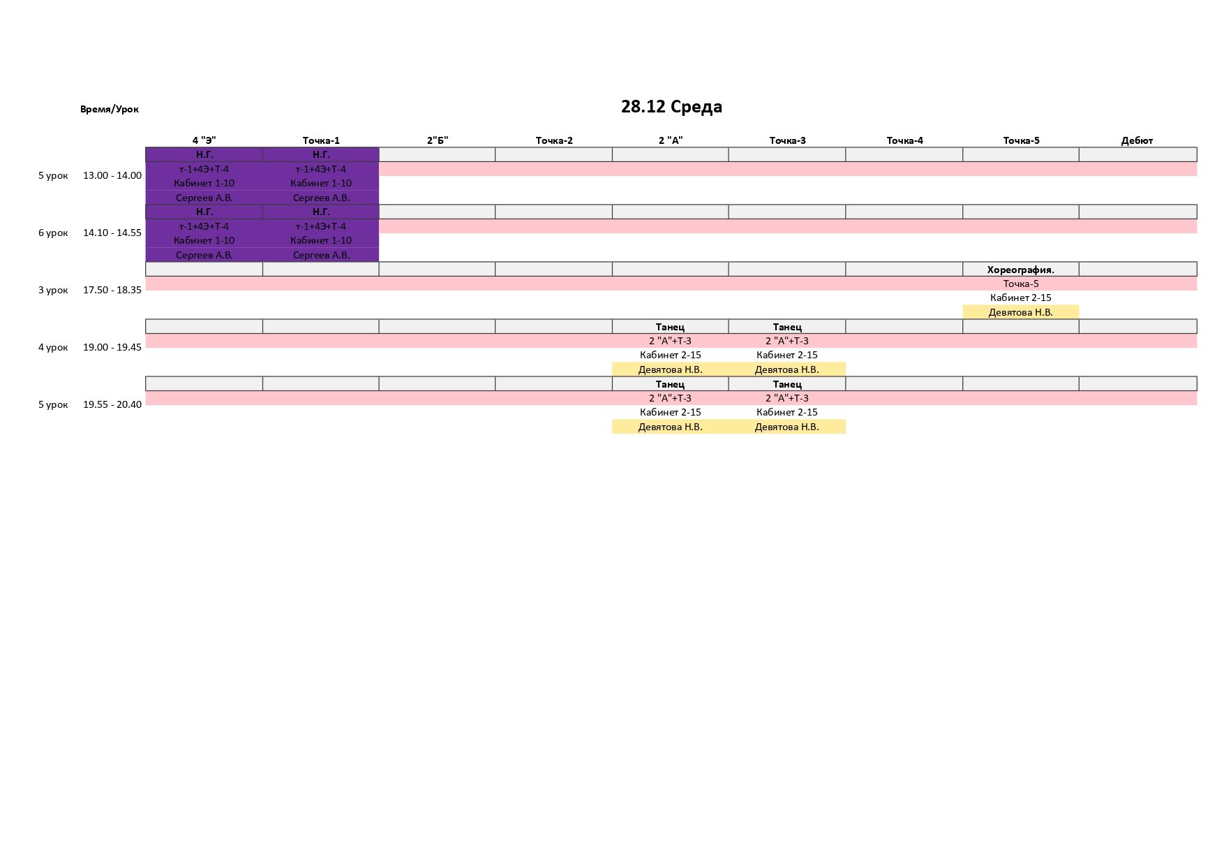 желтый цвет- обратите внимание, занятие стоит в другой аудитории или его перенесли с другого дня;