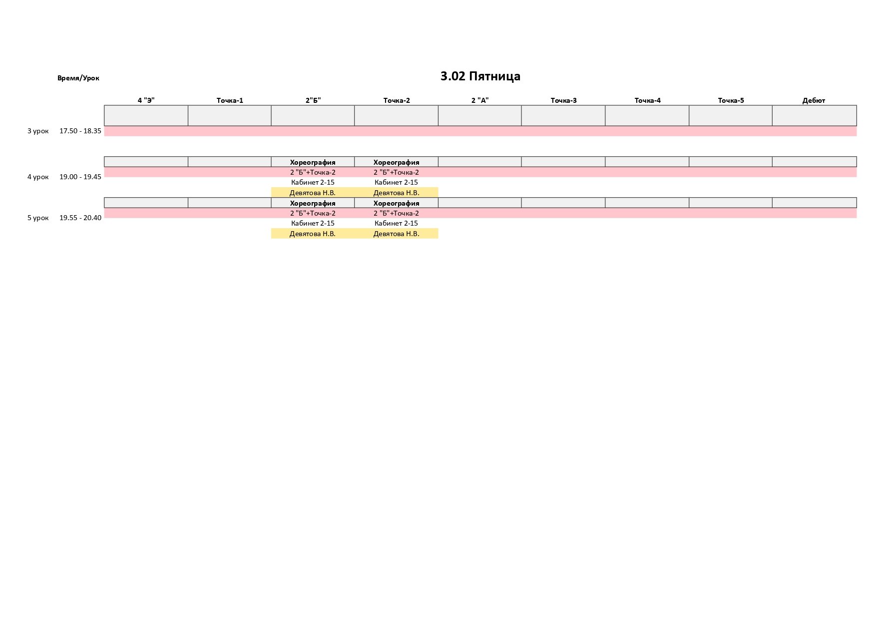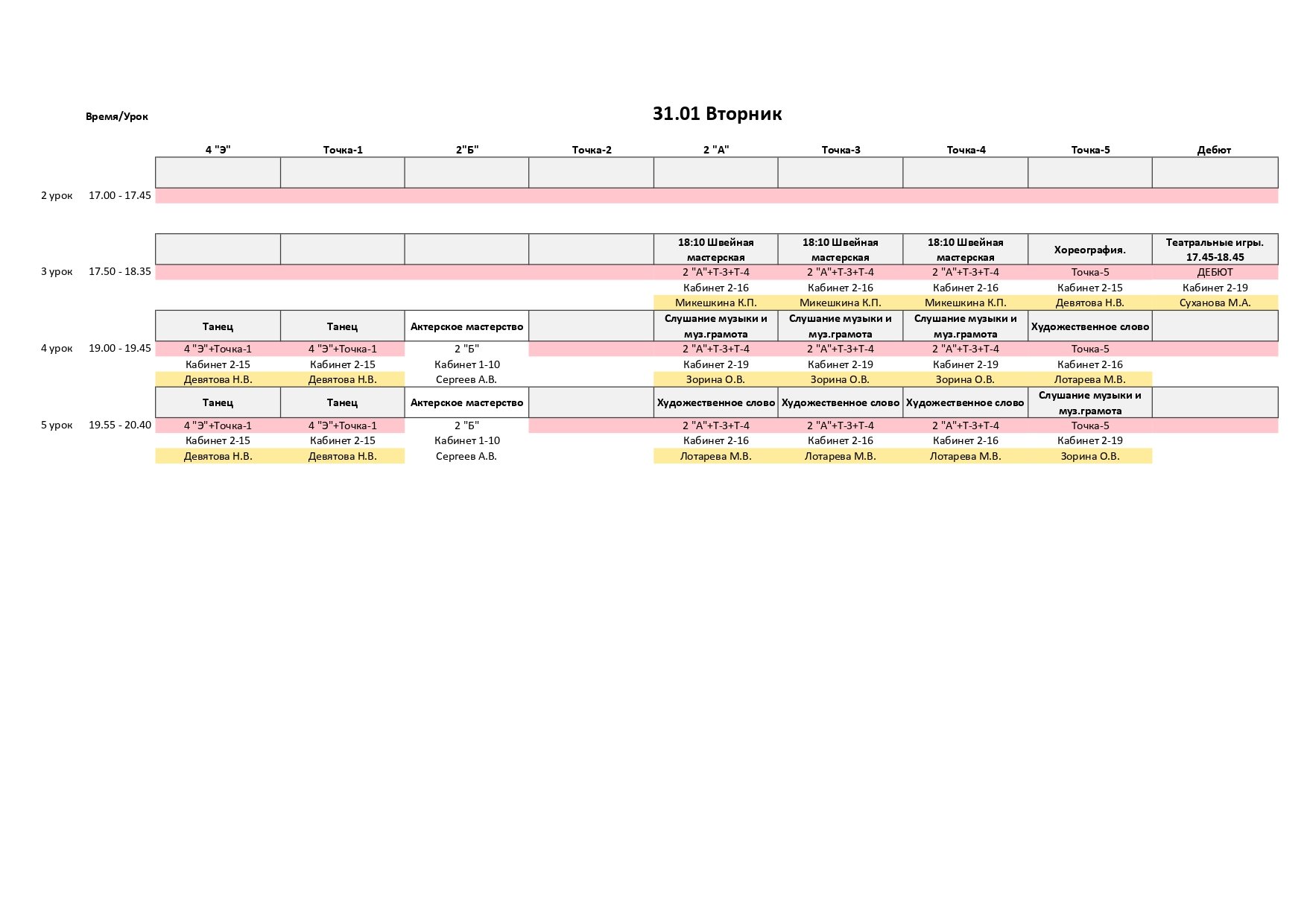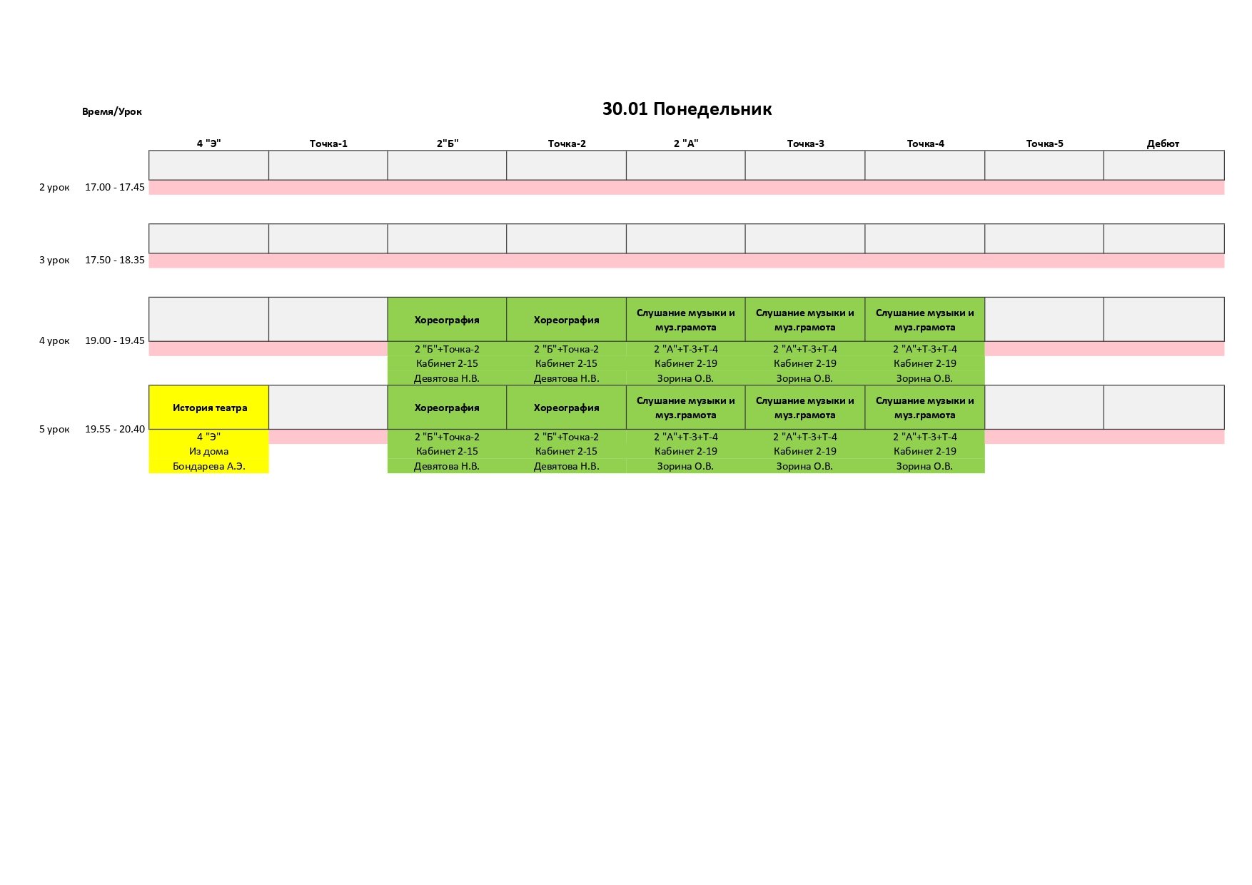 РАСПИСАНИЕ С 30 ЯНВАРЯ ПО 5 ФЕВРАЛЯ