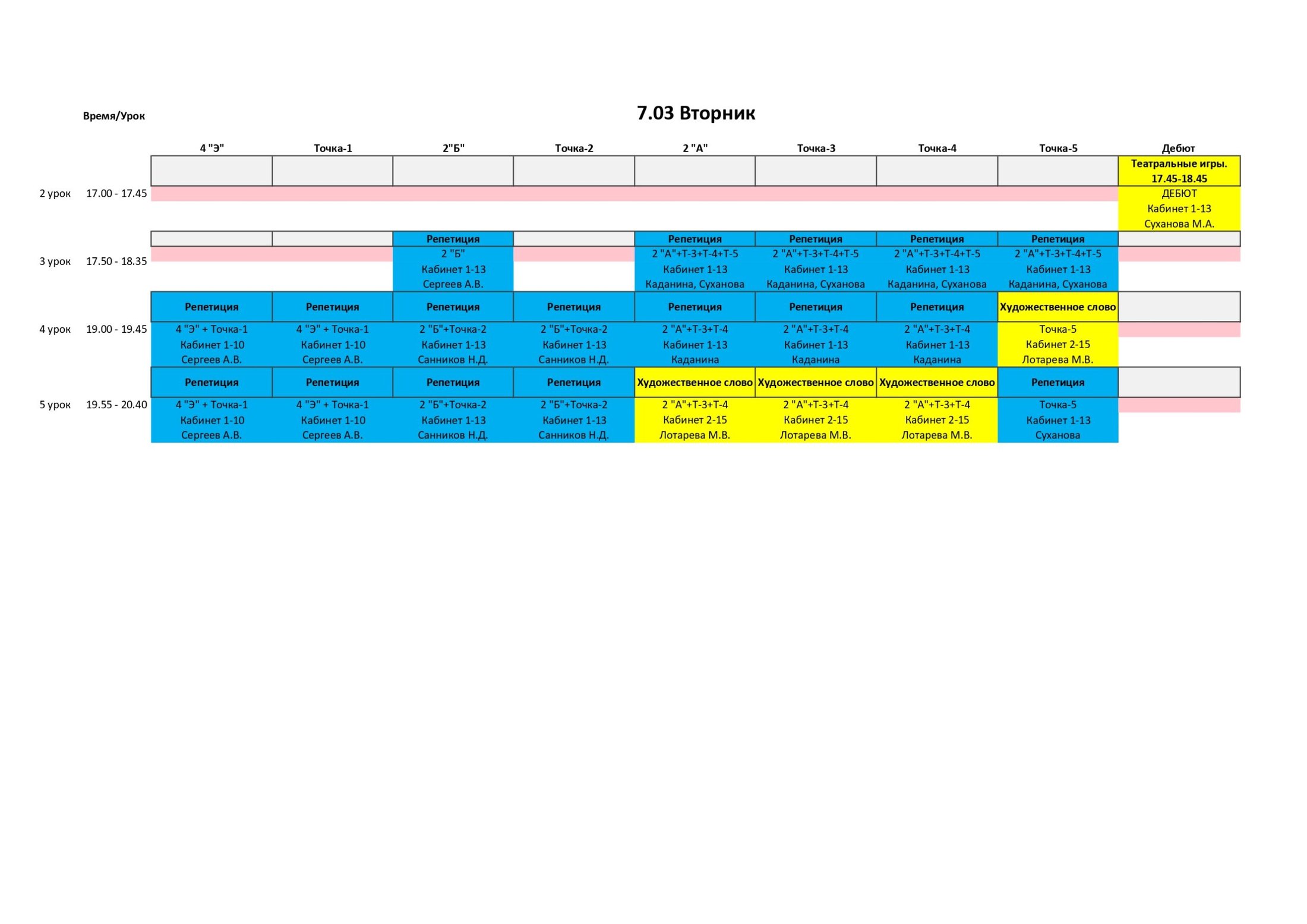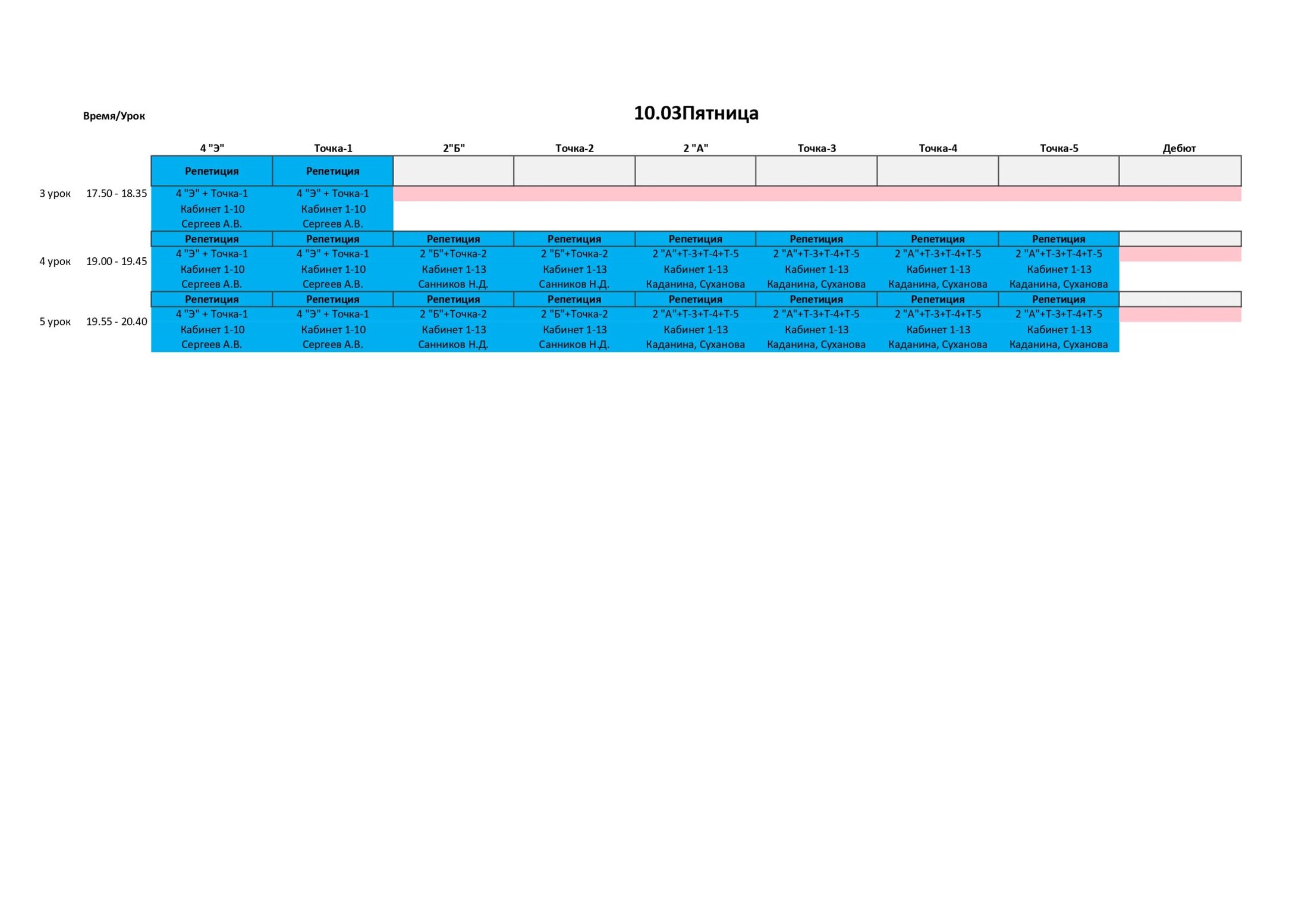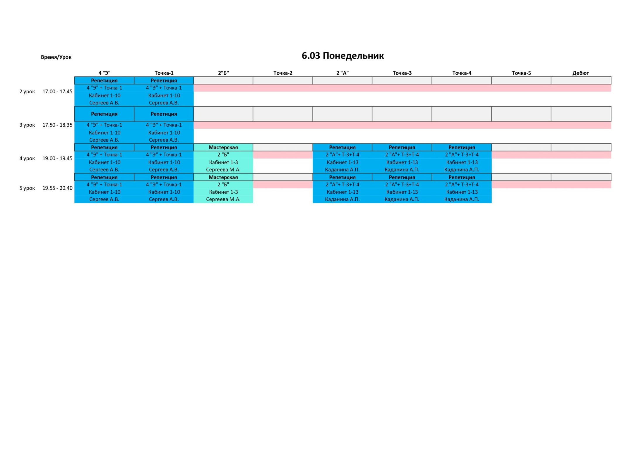 РАСПИСАНИЕ С 6 ПО 12 МАРТА