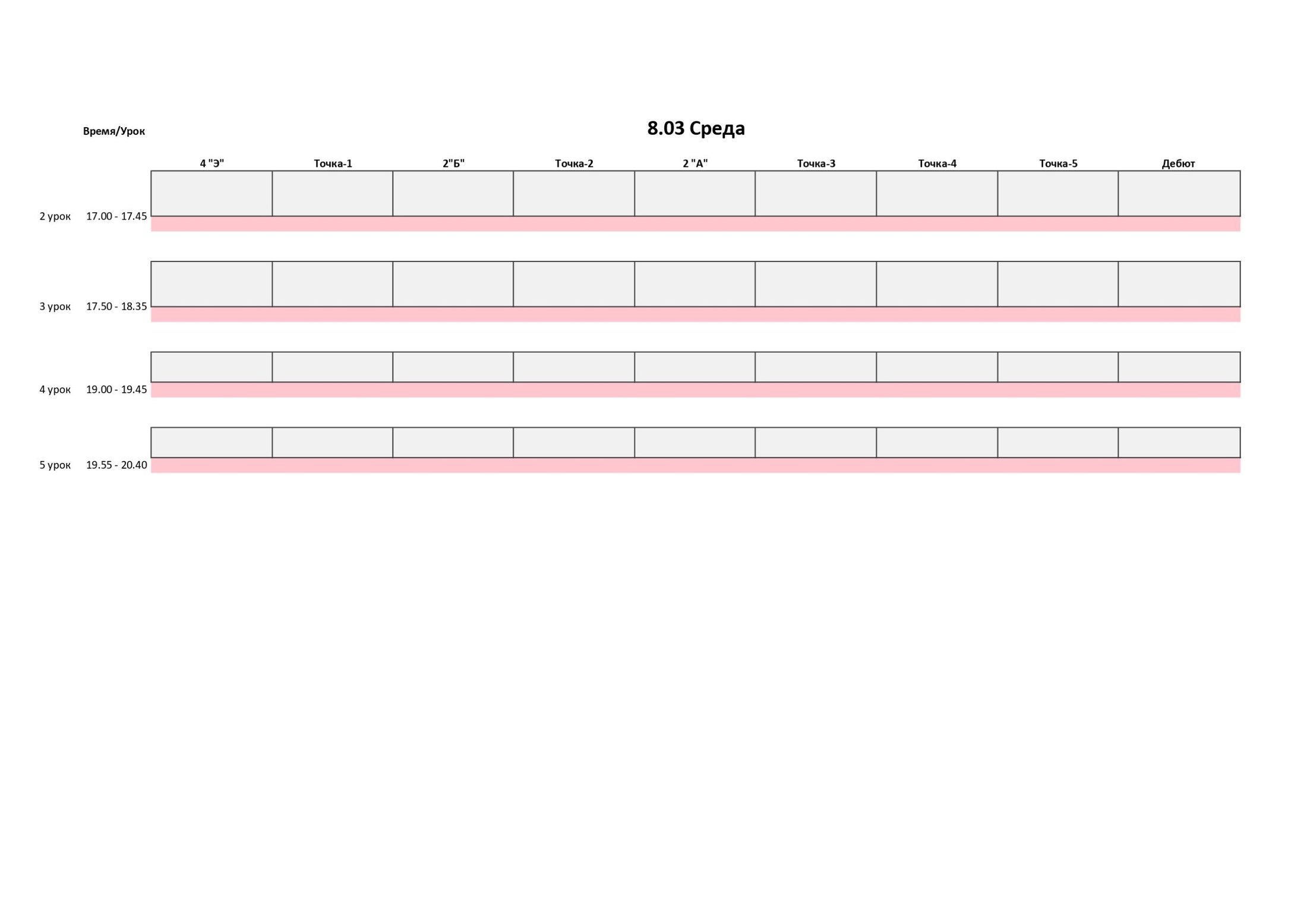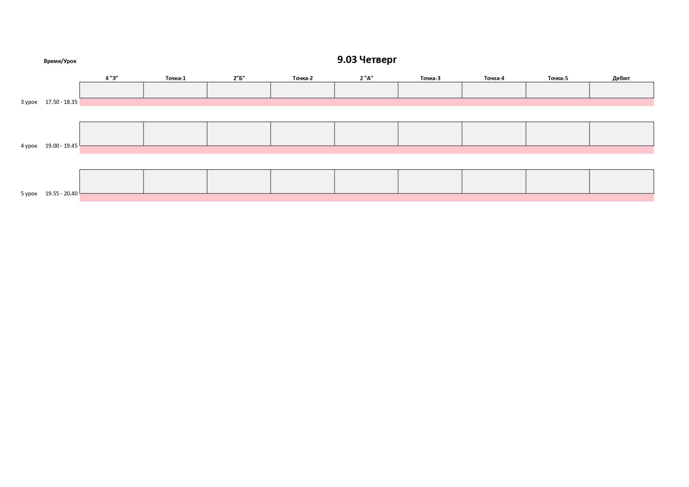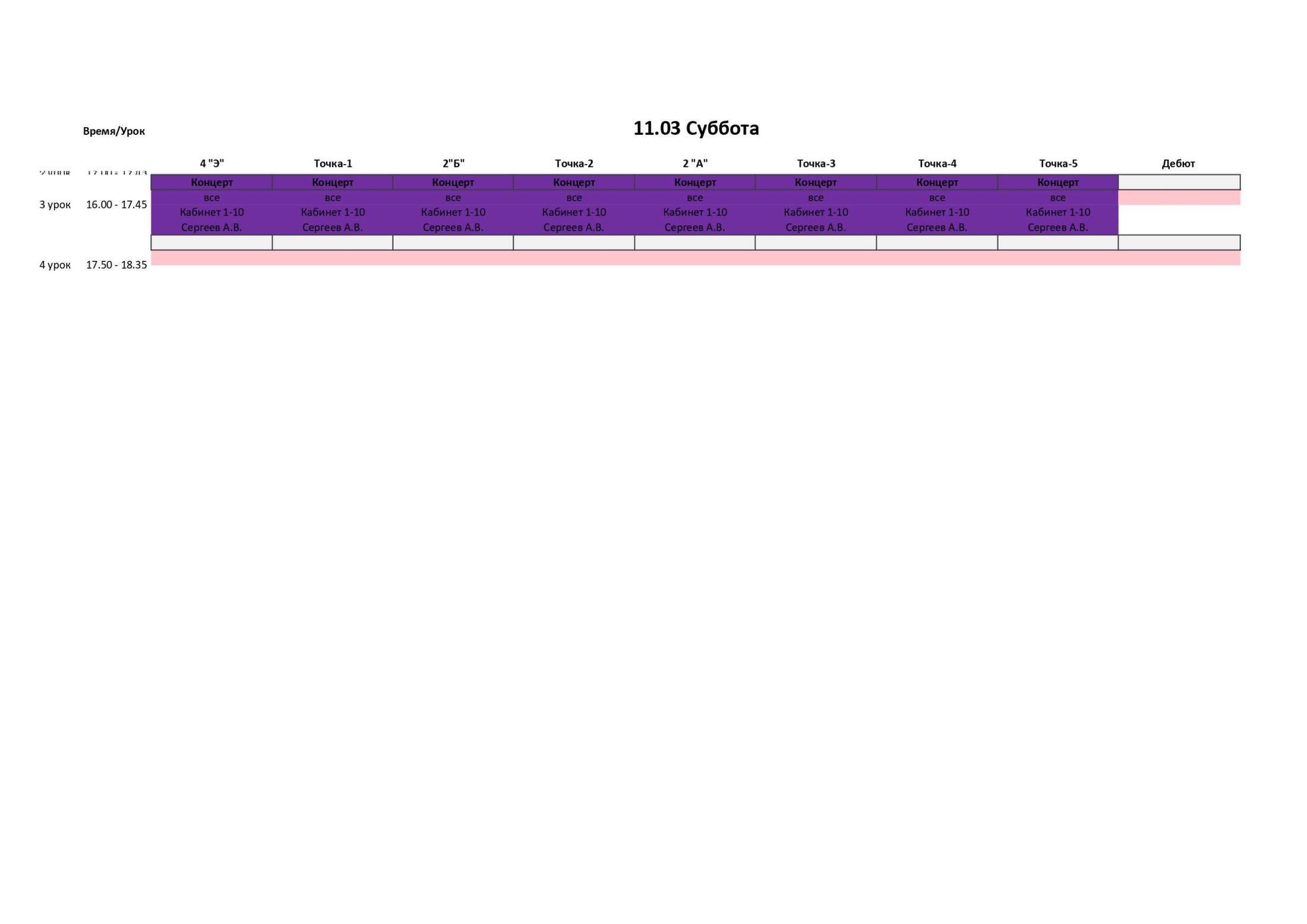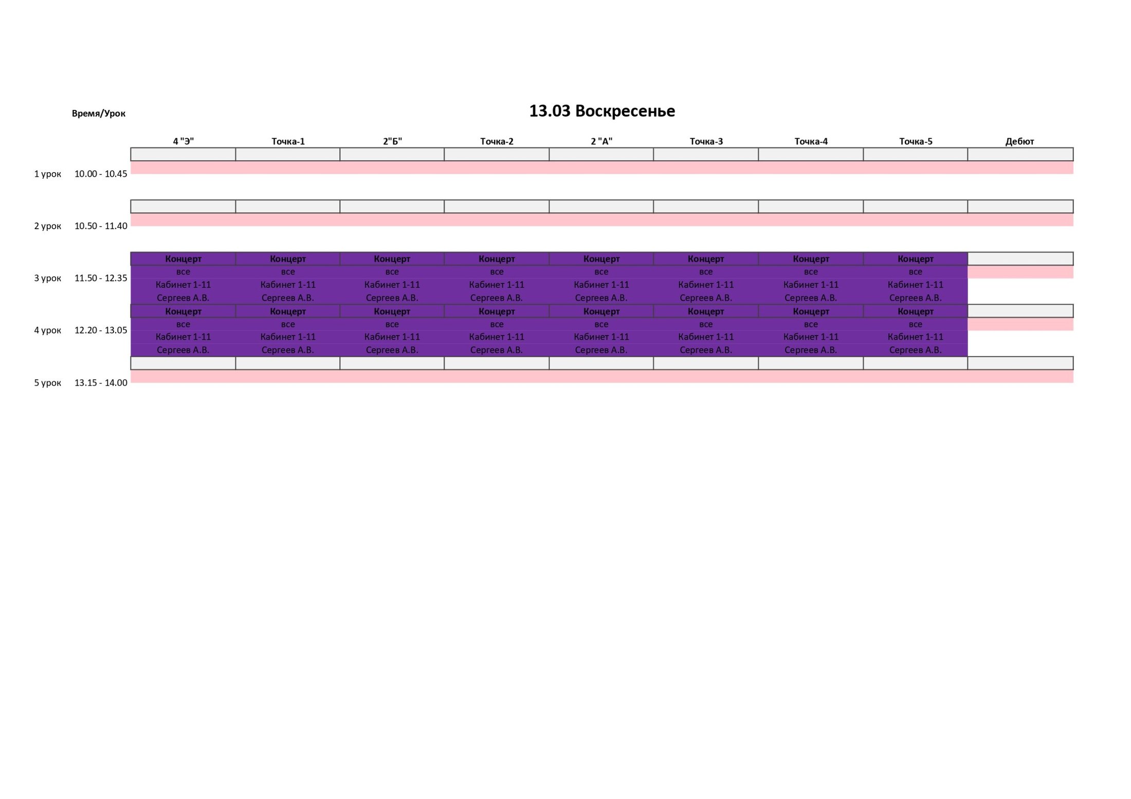 РАСПИСАНИЕ С 6 ПО 12 МАРТА